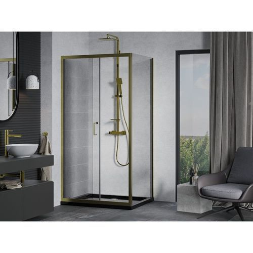 Mexen Apia Duschabtrennung 140x100cm Transparent Gold + Flat Duschwanne Schwarz