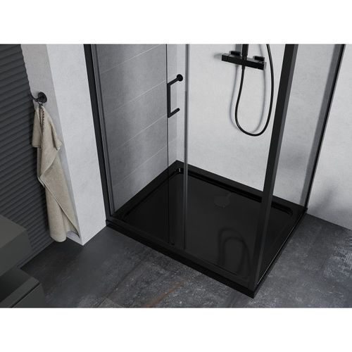 Mexen Apia Duschabtrennung 140x90 cm, Schwarz, inkl. Duschwanne Flat, Schwarz