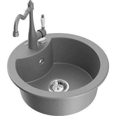 • Mexen Andres Granitspüle Grau mit Carla Mischbatterie