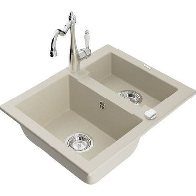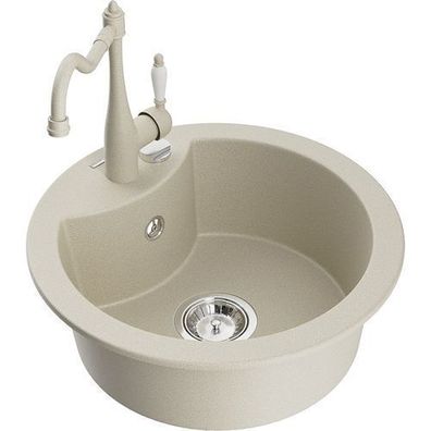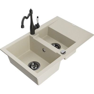 • Mexen Gaspar Granitspüle Beige mit Armatur Carla