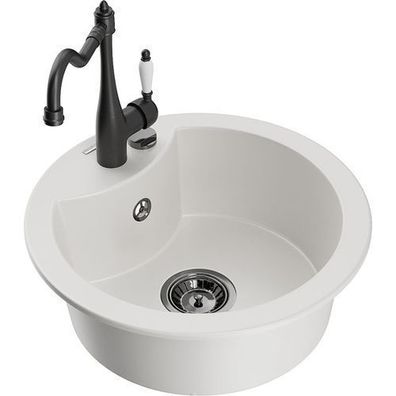 • Mexen Cesar Granitspüle & Mischbatterie Carla Weiß
