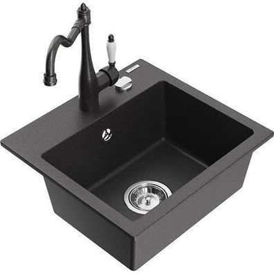 • Mexen Tomas Granitspüle Schwarz mit Carla Armatur