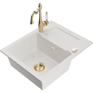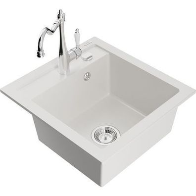• Mexen Cesar Granitspüle, Weiß mit Armatur Carla