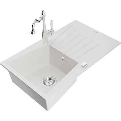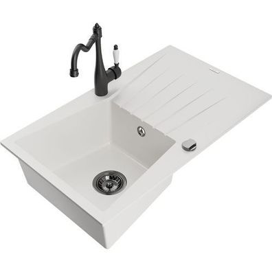 • Mexen Enzo Granitspüle Weiß mit Carla Mischbatterie