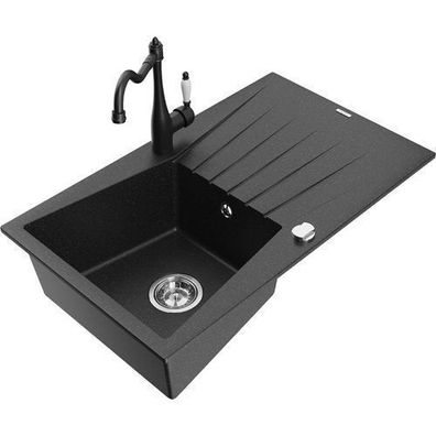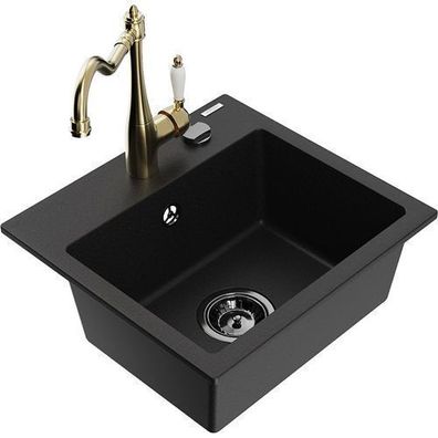 • Mexen Bruno Granitspüle mit Armatur Carla, Schwarz