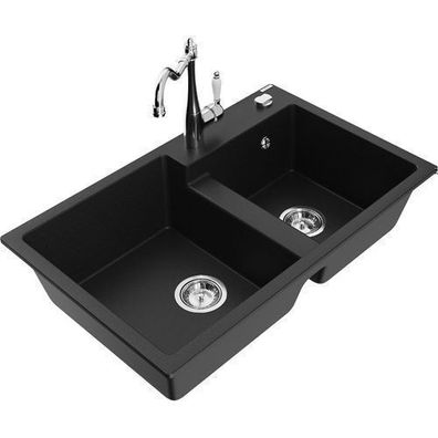 • Mexen Cesar Granitspüle mit Carla-Mischer, Schwarz