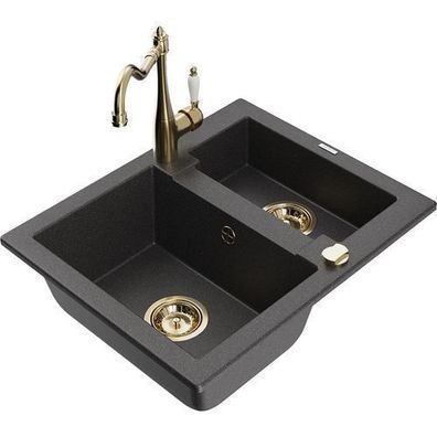 • Mexen Vito Granitspüle mit Carla Mischbatterie - Gold