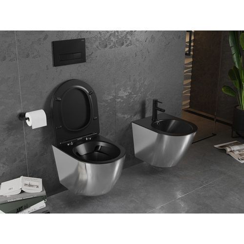 Mexen Lena Hänge-WC Randlos Slim Schwarz/Silber mit Absenkautomatik