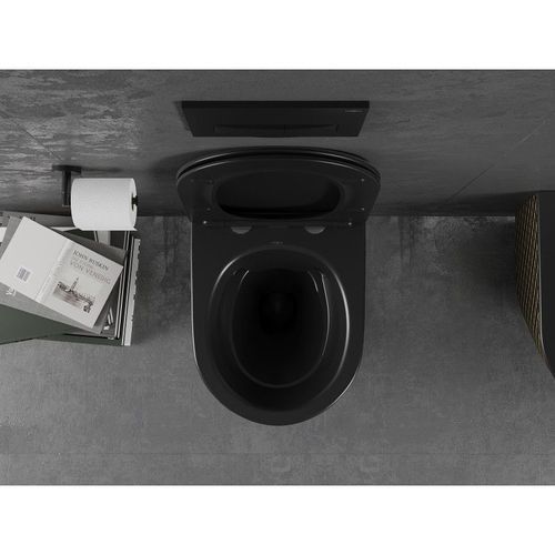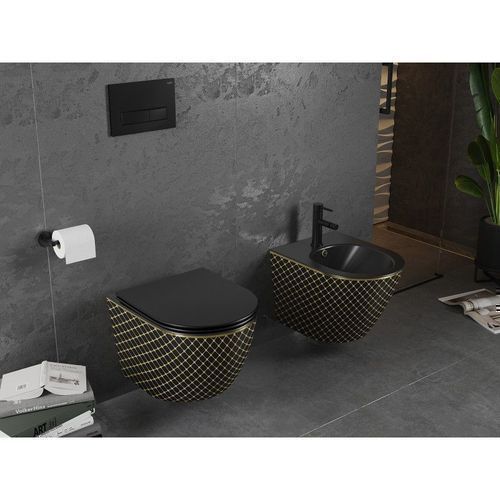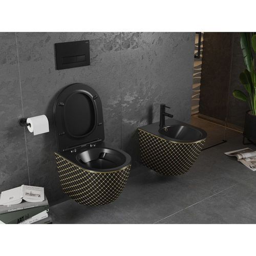 Mexen Lena WC Randlos Slim Schwarz/Gold, Hängend mit Absenkautomatik