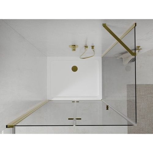 Mexen Lima Klapp-Duschkabine 100x70 cm Gold + Flache Duschwanne, Transparent