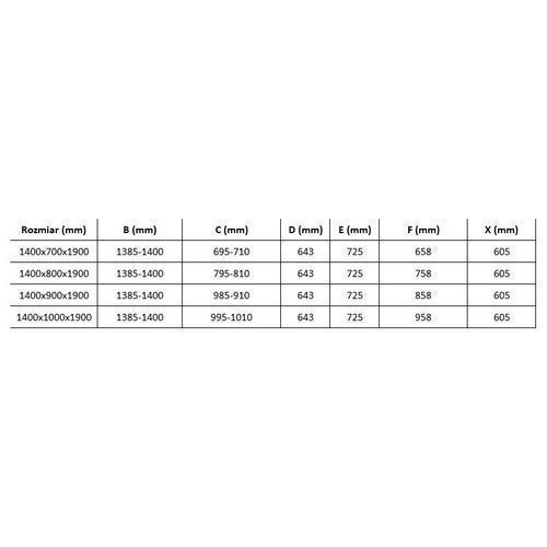 Mexen Omega Duschabtrennung 140x70 cm, Chrom, Schiebetür, Hartglas, 8mm Glas