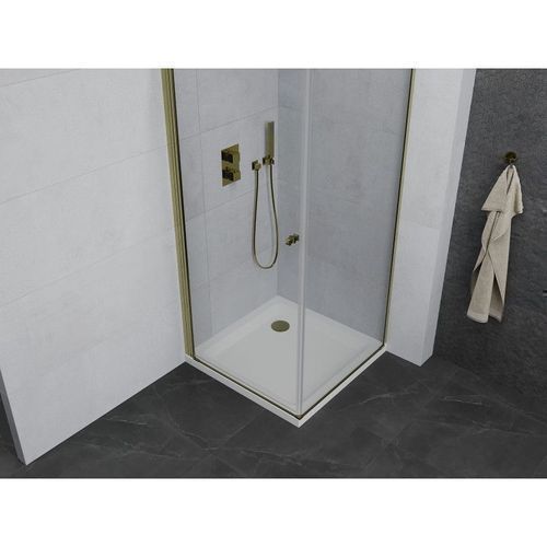 Mexen Pretoria Duschabtrennung 90x90 cm Transparent/Gold + Flat Duschwanne