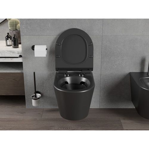 Mexen Rico Randloses WC, schwarzmatt, slim Sitz, Absenkautomatik, hängend