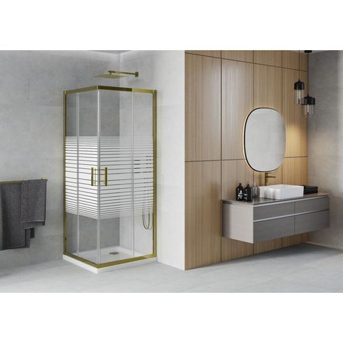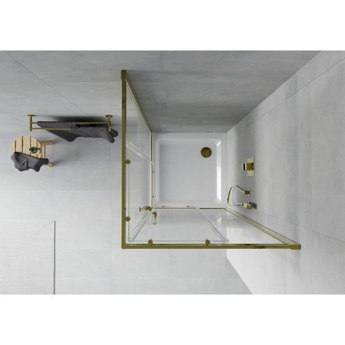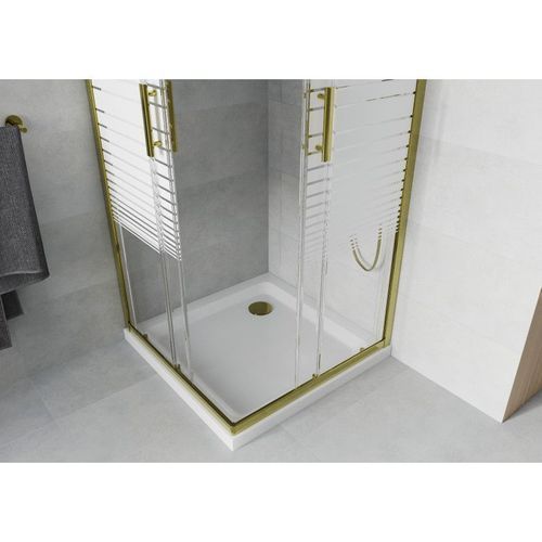 Mexen Rio Duschkabine 70x70cm Gold + Slim Duschwanne Weiß, Schiebetür