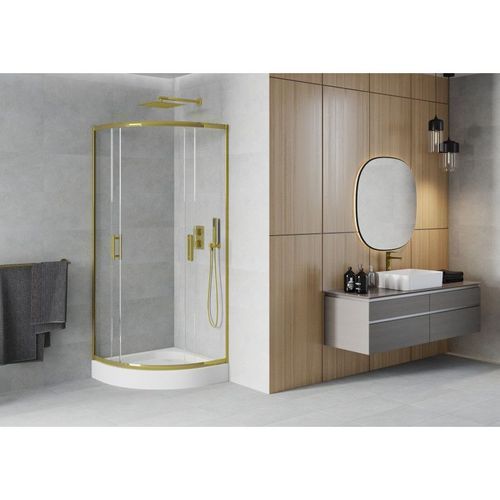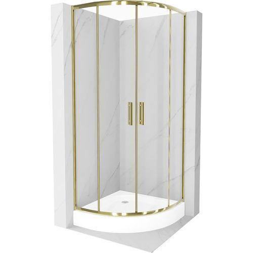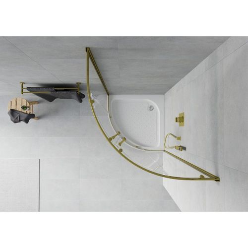 Mexen Rio Duschkabine 90x90 cm Gold inkl. Duschwanne Weiß Halbkreisform