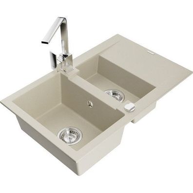 • Mexen Vito Granitspüle mit Rita Mischbatterie, Beige