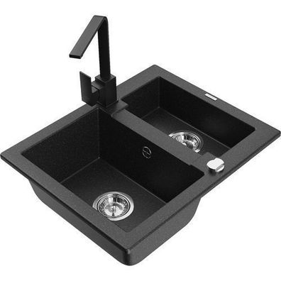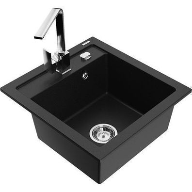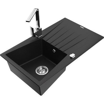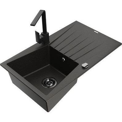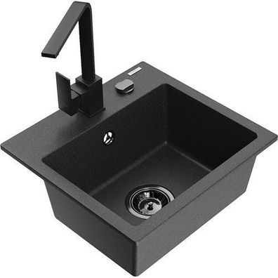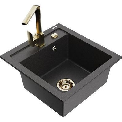 • Mexen Gaspar Granitspüle Schwarz mit Armatur Rita