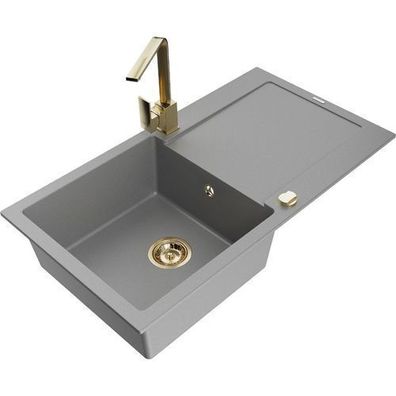 • Mexen Leo Granitspüle Grau mit Goldmischer Rita