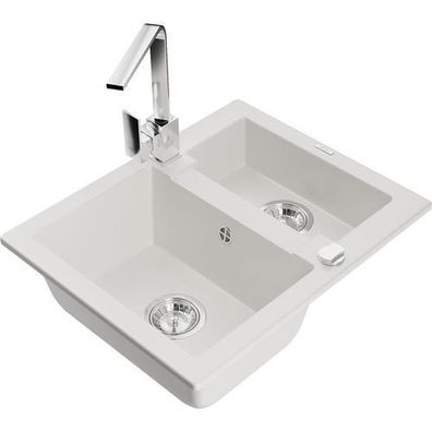 • Mexen Elias Granitspüle + Mischbatterie Rita Weiß