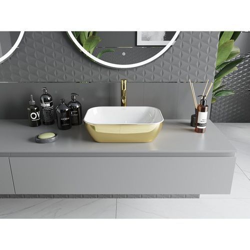 Mexen Rita Aufsatzwaschbecken 45 x 32 cm, Weiß/Gold - 21084506
