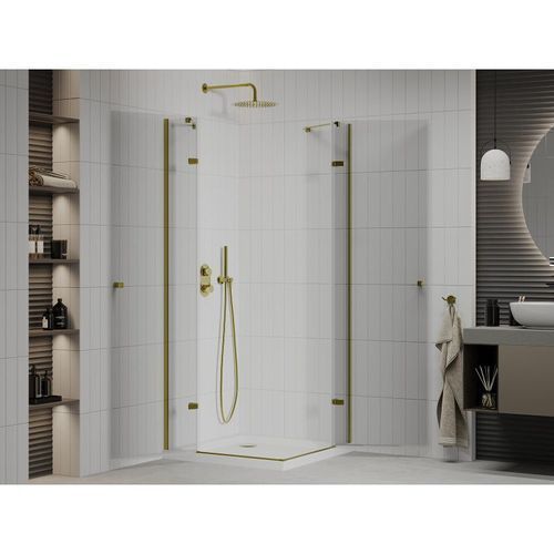 Mexen Roma Duo Duschabtrennung 70x70 cm, Gold, inkl. Flat Duschwanne