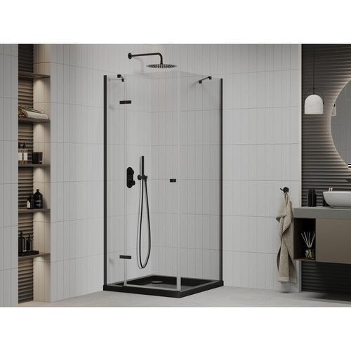 Mexen Roma Duschabtrennung 80x80 cm, Transparent/Schwarz + Flat Duschwanne