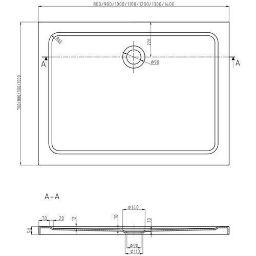 Höhe der Duschwanne: