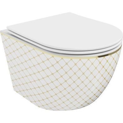 • Mexen Lena Hänge-WC Randlos Goldmuster, Slim-Sitz Absenkautomatik, Weiß