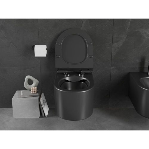 Mexen Sofia Randlos WC, Schwarz matt, Slim Sitz mit Absenkautomatik