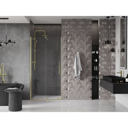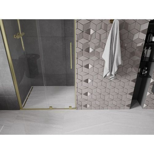 Mexen Velar Schiebetür 120 cm, Gehärtetes Glas, Gold gebürstet, 8 mm