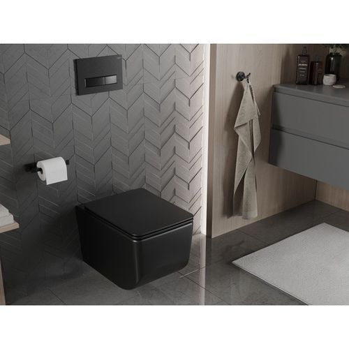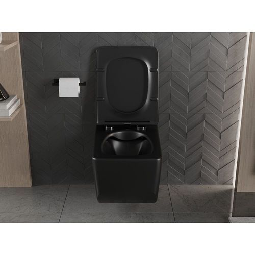 Mexen Vera Randloses Hänge-WC Schwarz, Slim Sitz, Absenkautomatik, Matt