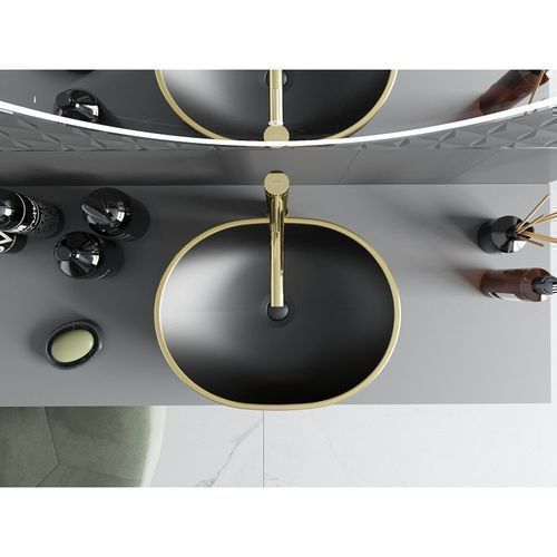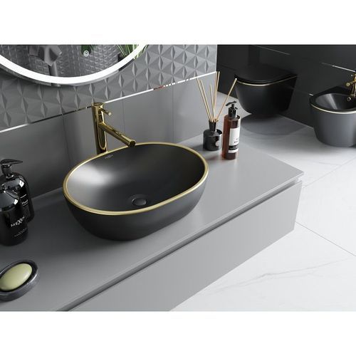 Mexen Viki Aufsatzwaschbecken 48 x 35 cm, schwarz matt/Goldrand - 21054875