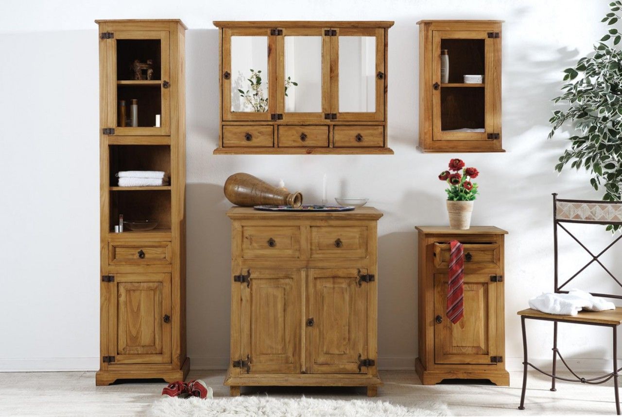 Mexico Hochschrank Hacienda - Badezimmerschrank- Badmöbel - Landhausstil - Pinie - Ma