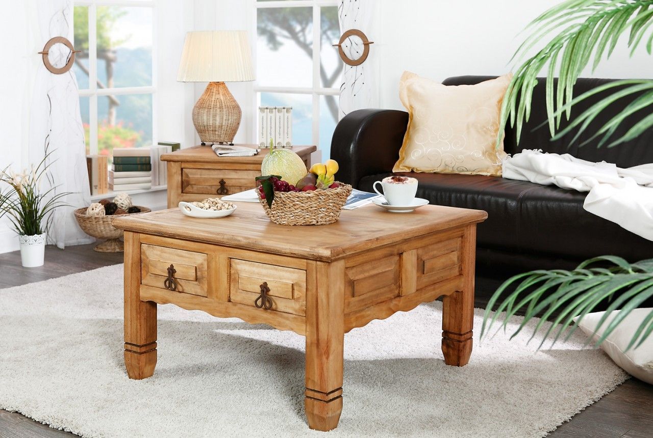 Mexico Möbel - Couchtisch quadratisch mit 2 Schubladen