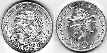 Mexico Olympiada 1968 (Olympische Spiele 1968) 25 Pesos, ca. 18 g, ca. 38 mm Durchmes
