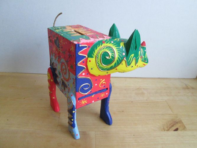 Mexikanische Volkskunst Kuh Spardose Holzarbeit