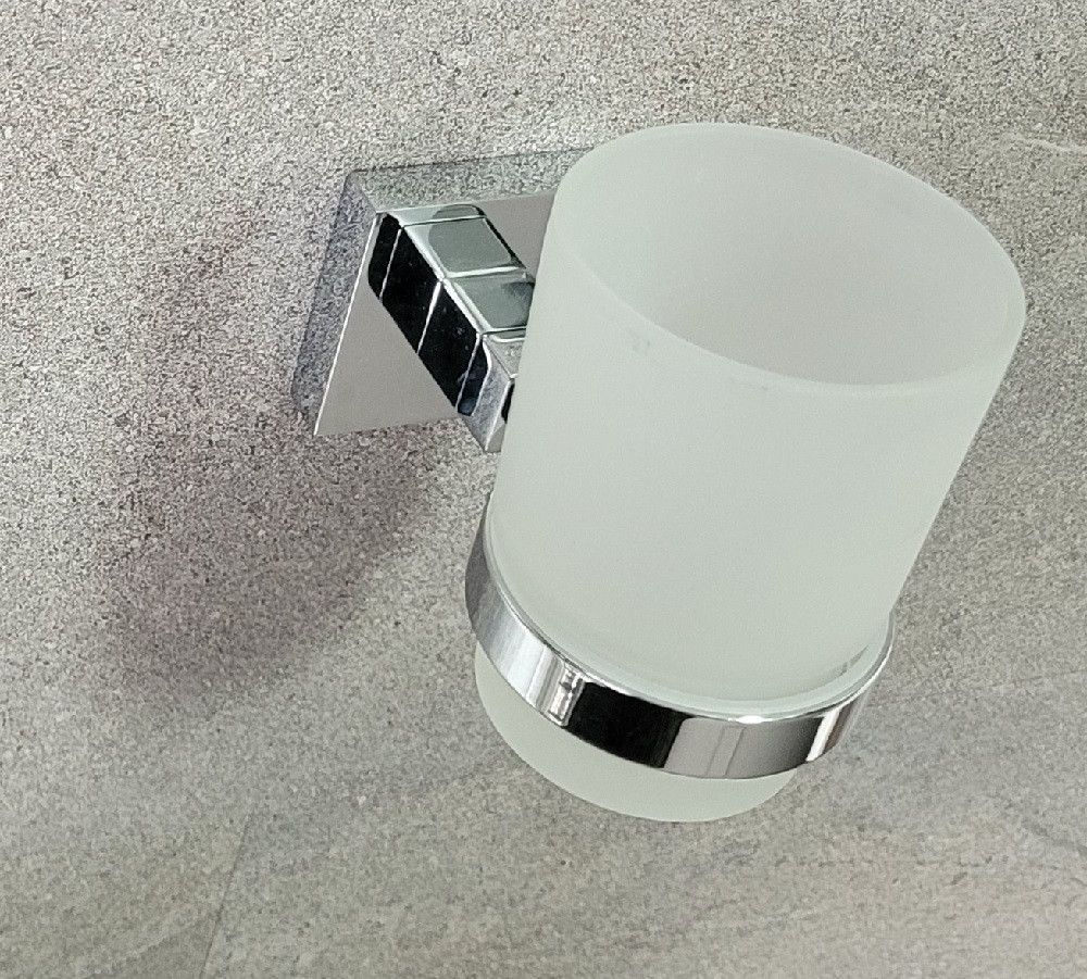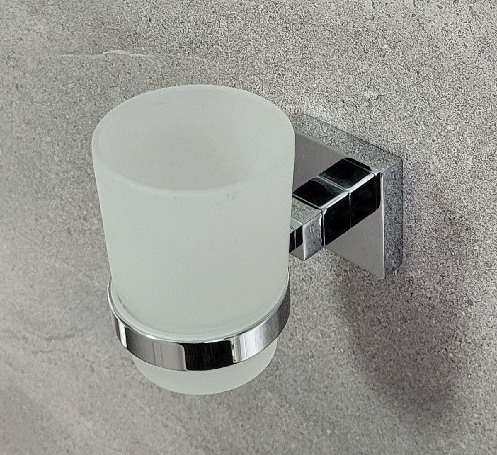 Haceka Mezzo Chrome Zahnbecher m. Wandhalterung 403002 Metall verchromt/ Glas satiniert