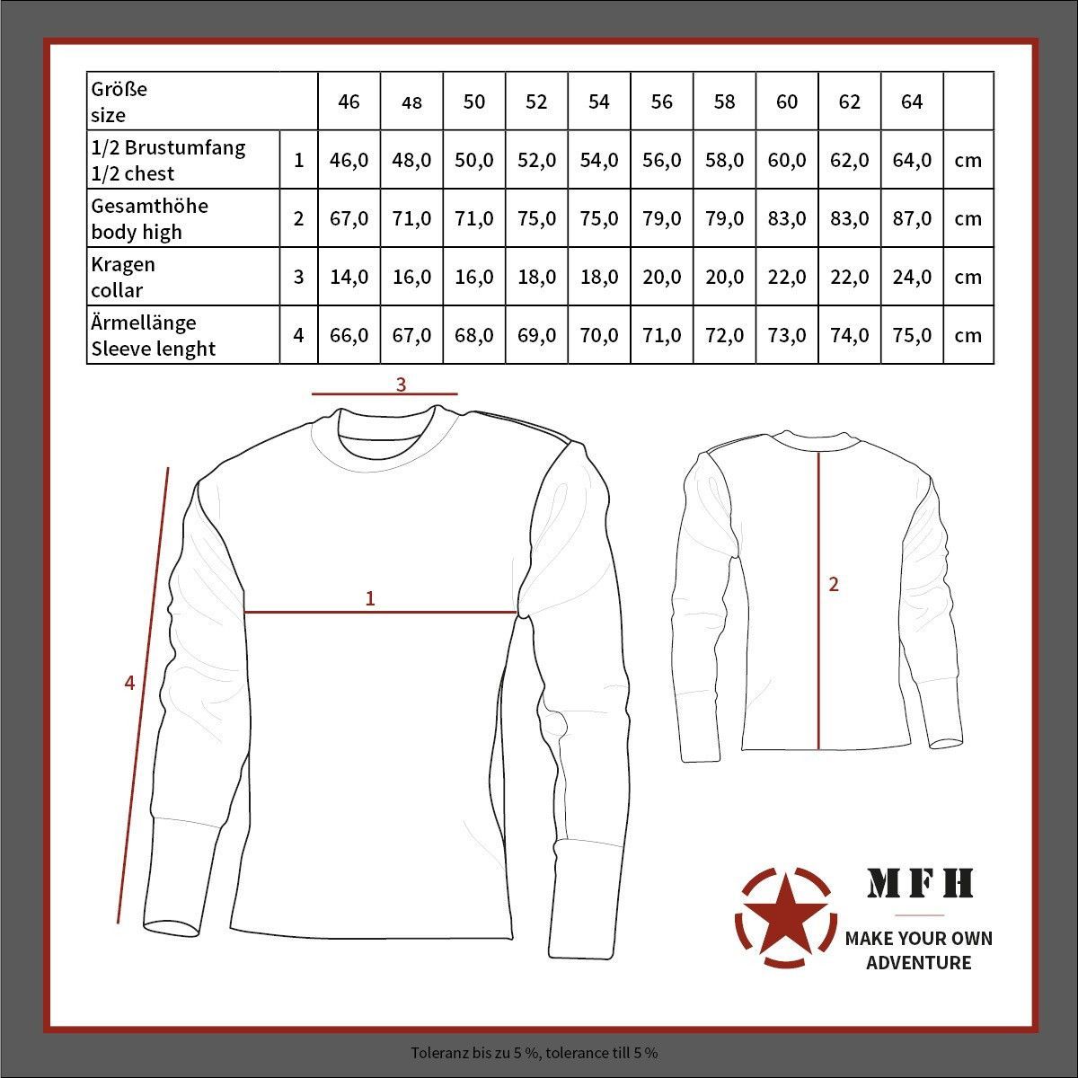 MFH MFH BW Pullover langarm mit Brusttasche blau 48 50 52 54 56 58 60 62 64