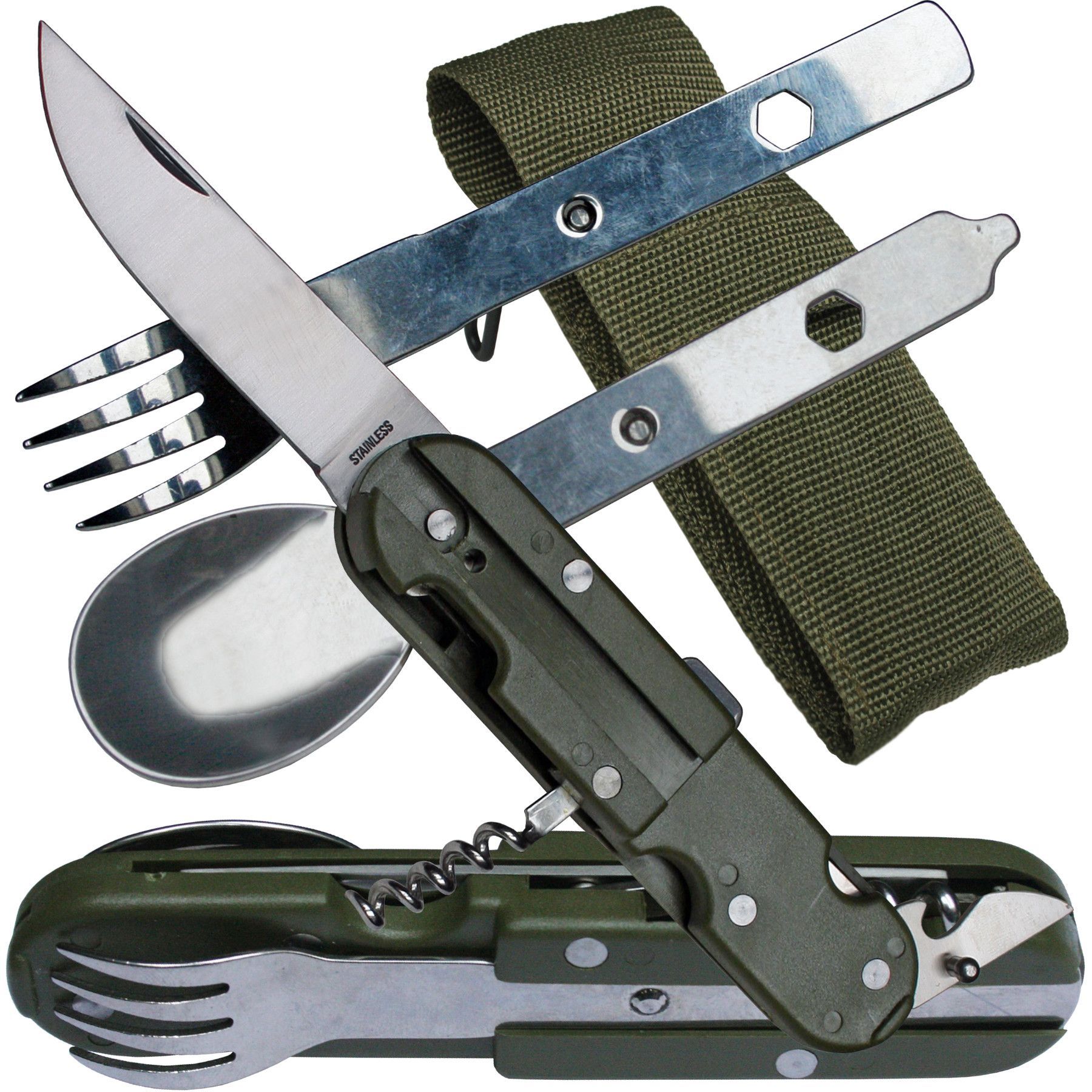 MFH MFH Essbesteck 5-teilig klappbar Campingbesteck mit Nylonetui Messer Gabel Löffel