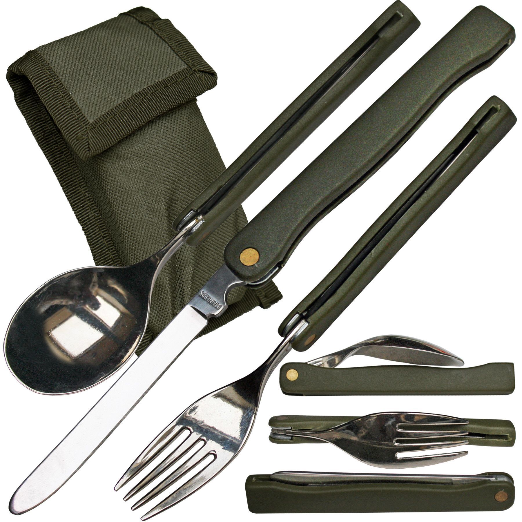 MFH MFH Essbesteck "Camping" oliv klappbar inkl. Nylonetui Messer Gabel Löffel