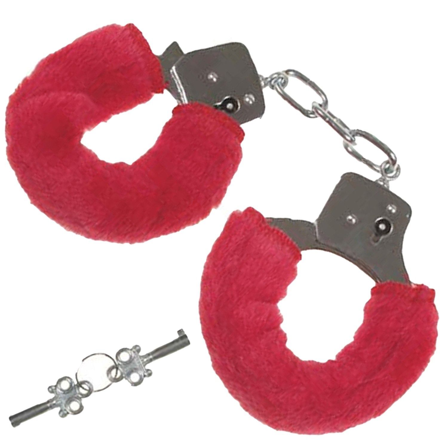 MFH MFH Handschellen Stahl verchromt mit Fell/ Plüschbezug in rot