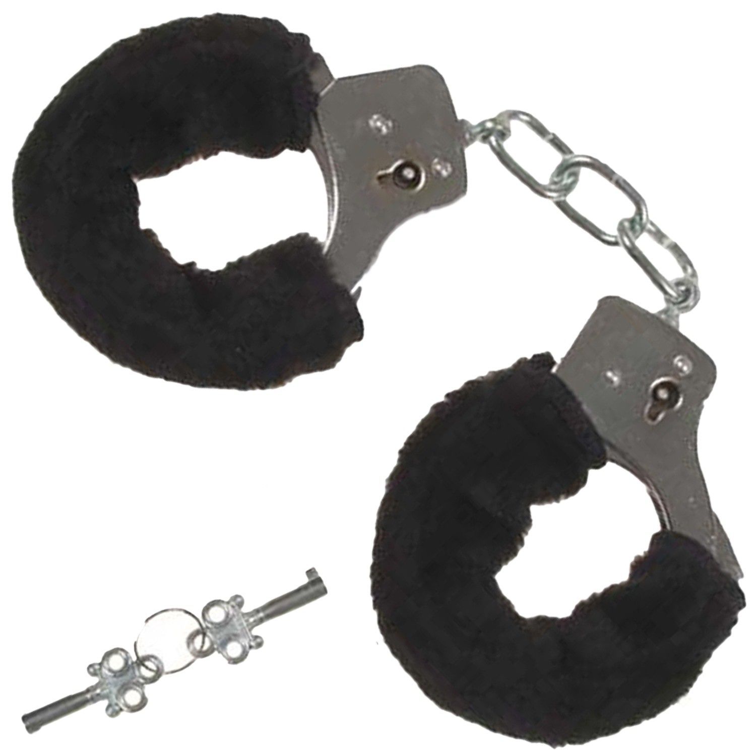 MFH MFH Handschellen Stahl verchromt mit Fell/ Plüschbezug in rot
