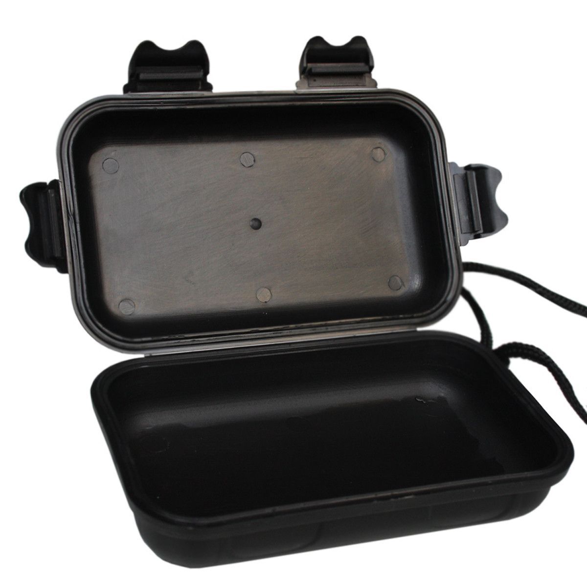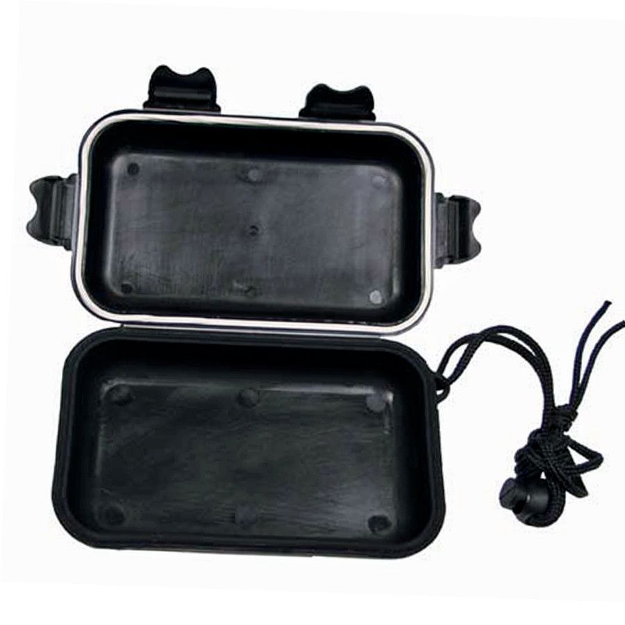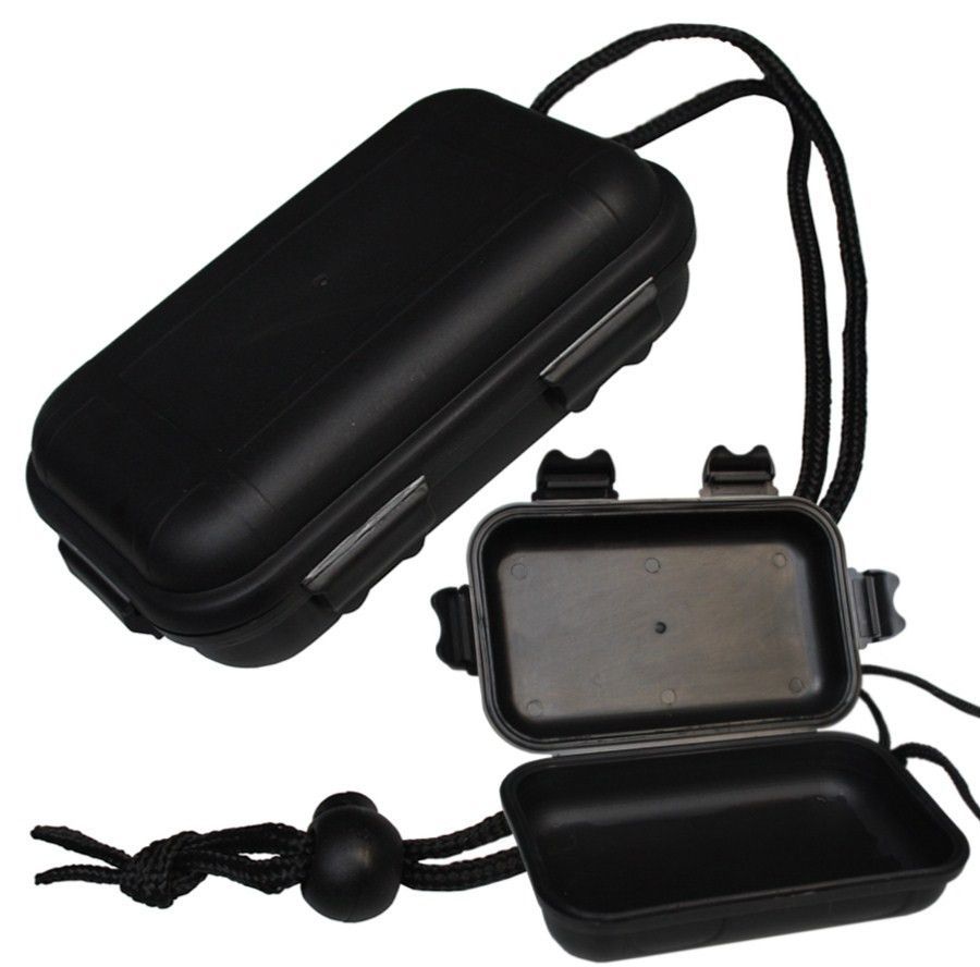 MFH MFH kleine Kunststoffdose schwarz, Outdoor Survival Box, Trageband mit Kordelstopper