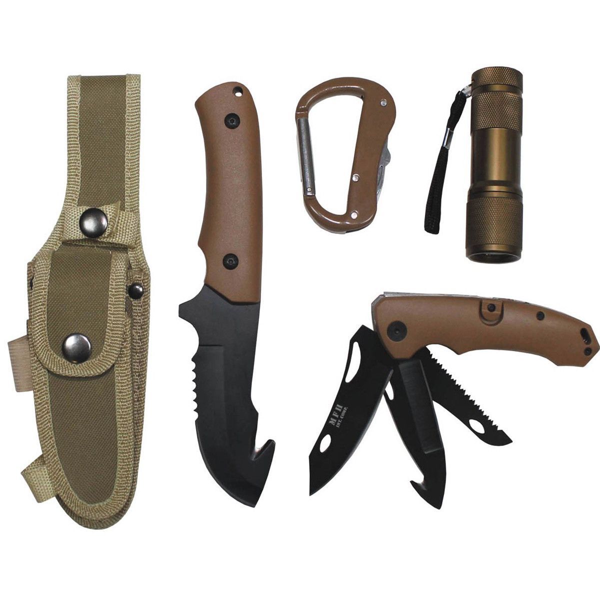 MFH MFH Messer Set Jagdmesser Outdoormesser Survival coyote tan mit Taschenlampe