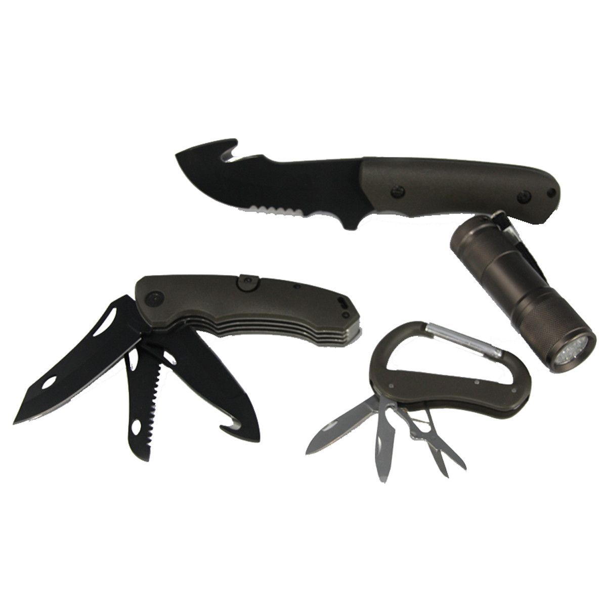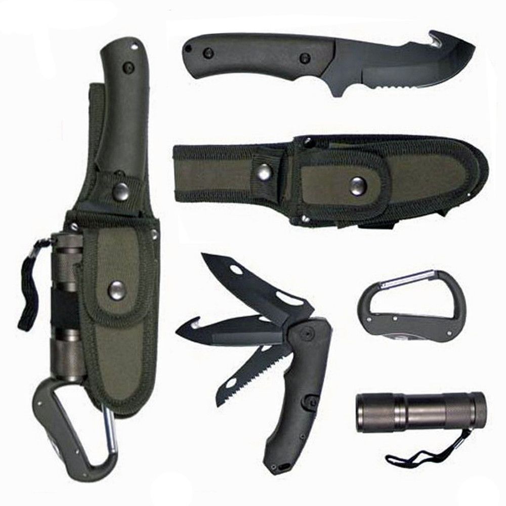 MFH MFH Messer Set Survival Jagdmesser Outdoormesser oliv mit Taschenlampe