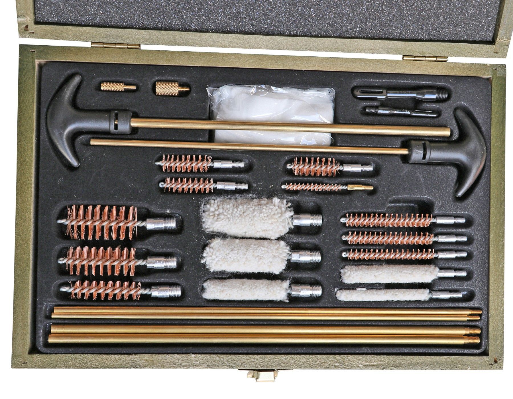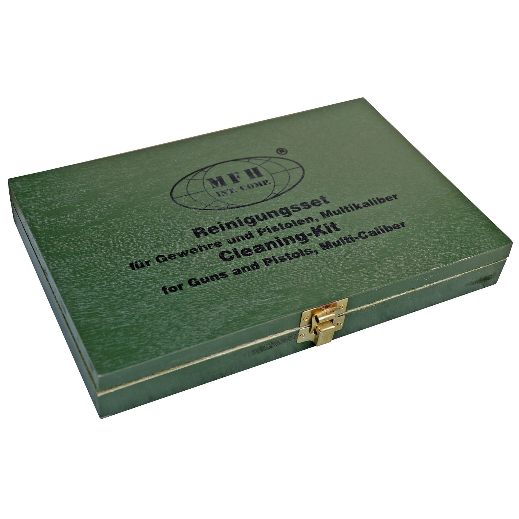 MFH MFH Reinigungsset 24 tlg. für Gewehr und Pistole Multikaliber Holzbox Jäger Polizei