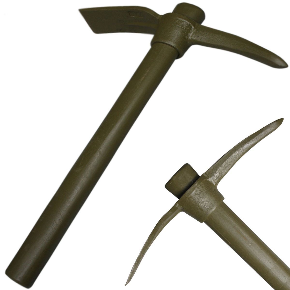 MFH MFH US Pickel Spitzhacke Flachhacke mit Holzstiel und Schutzhülle oliv