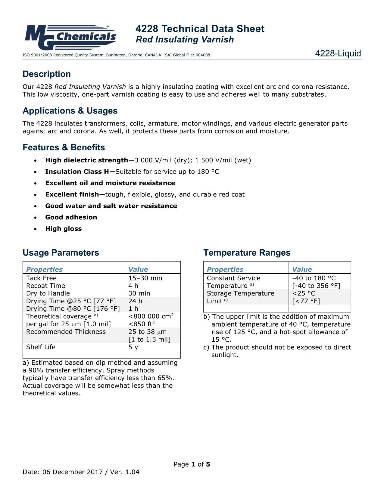 MG Chemicals 4228 Roter GLPT-Isolierlack, Klasse H Wärmeschutz, 55 ml