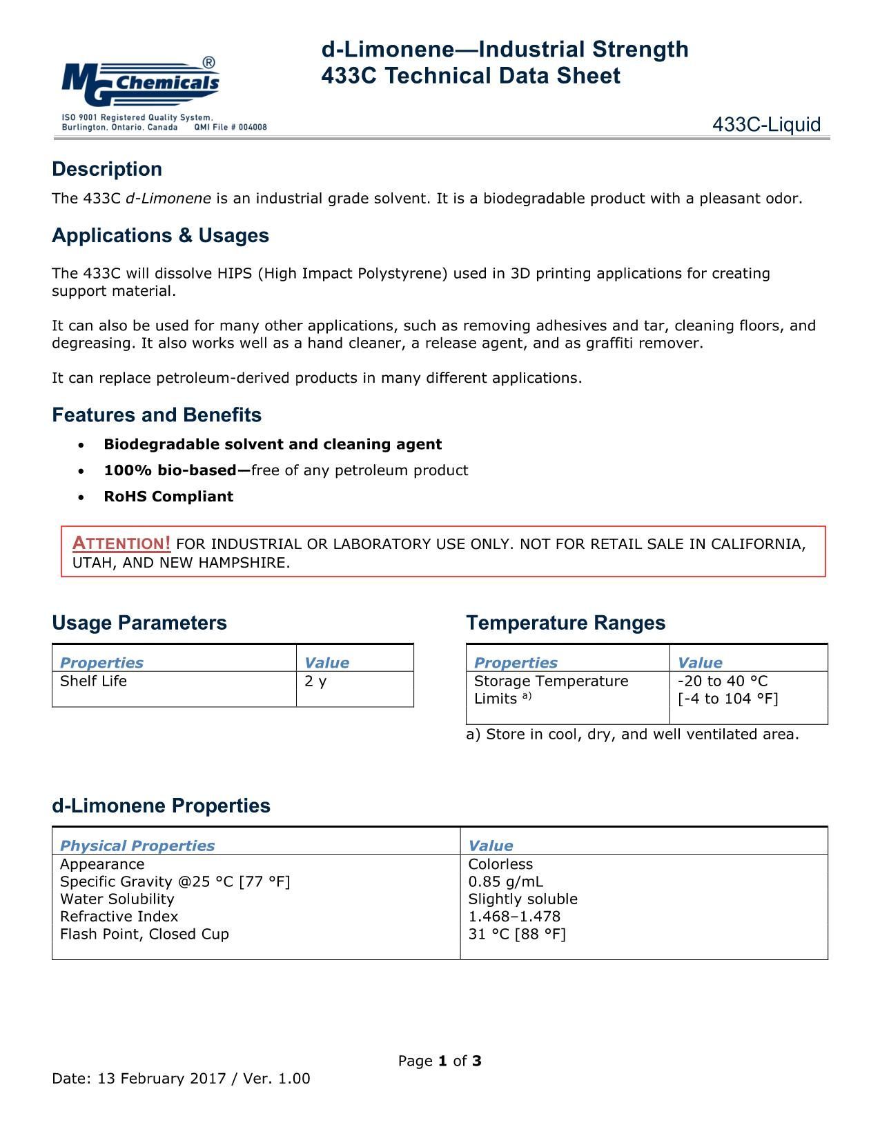 MG Chemicals 433c d-Liquidimonen—Industrielle Stärke, 945 ml