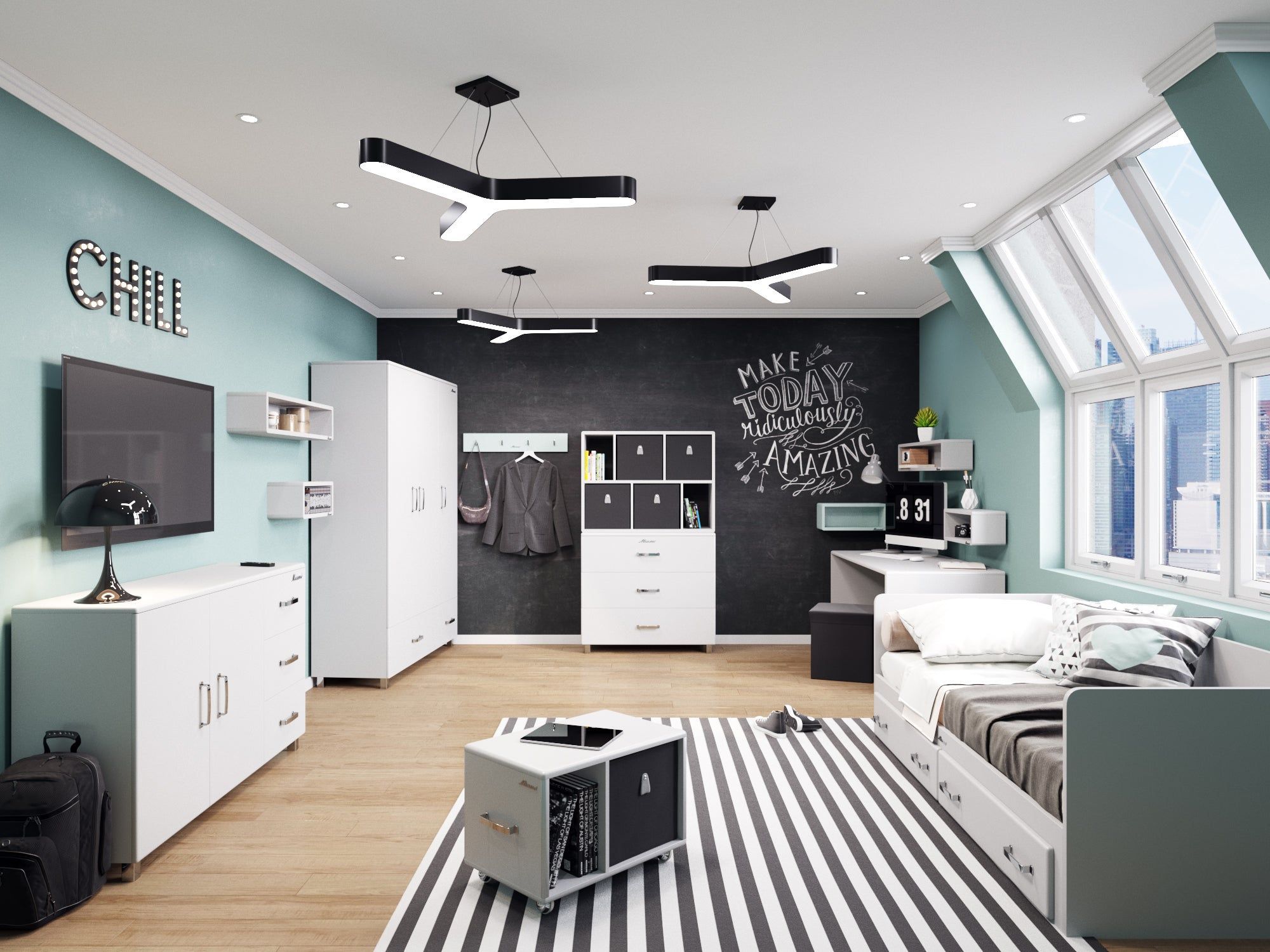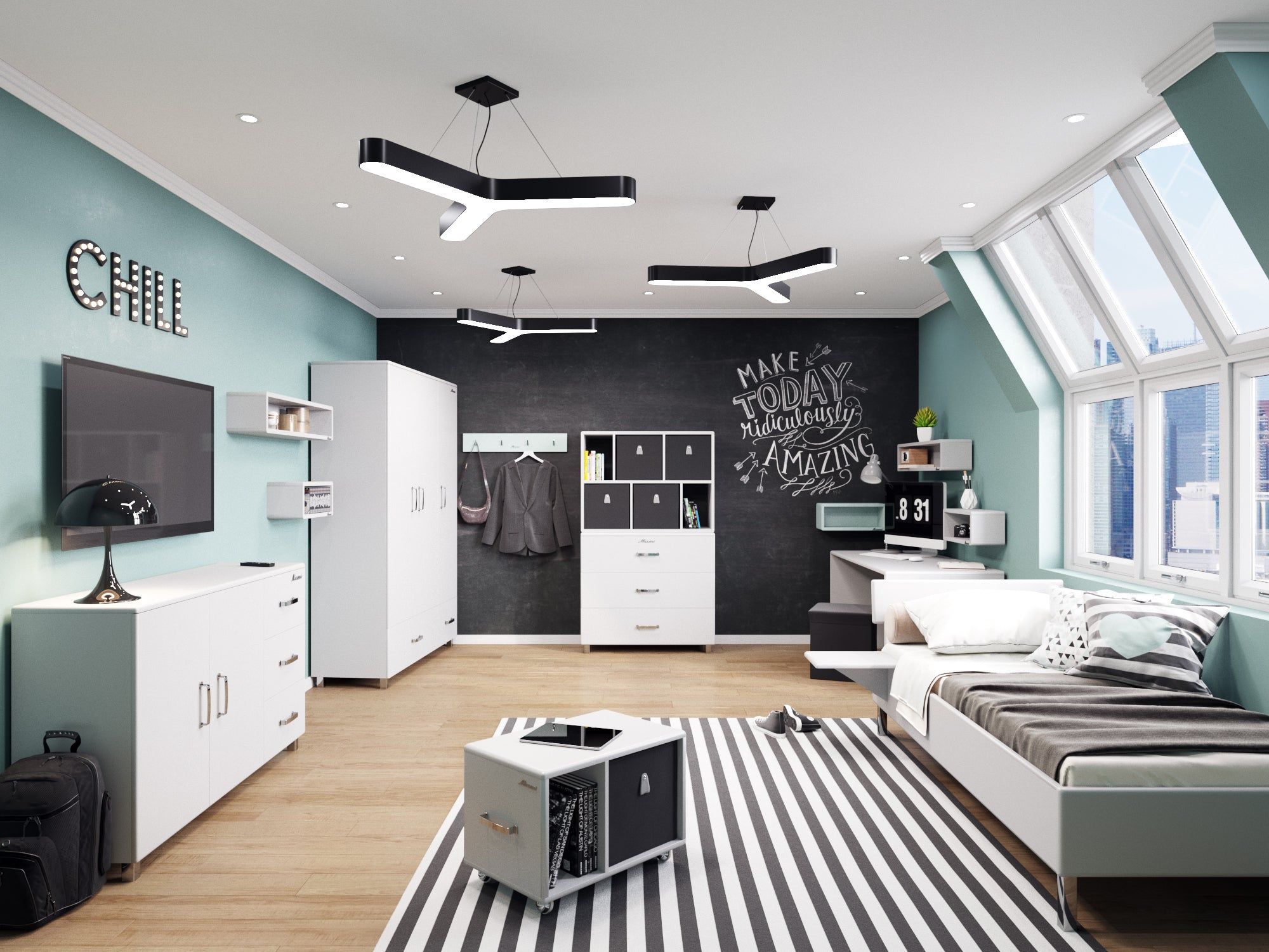 Miami - Kleiderschrank 2türig mit 1 Schublade, Soft-Close, Metallic Weiß